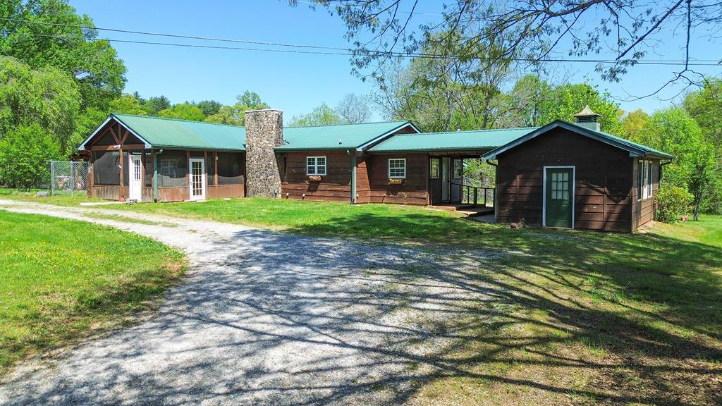 Spacious One-Level Ranch on 4+ Acres! Discover the potential of this 3 BD/2.5 BA home, ideally set on over 4 acres of level to gently rolling land w/no restrictions; perfect for gardening, homesteading, or simply enjoying your own mtn retreat. Inside, you'll find a large living room with gas logs, a large kitchen featuring abundant cabinetry & ample counter space & a desirable split-bedroom layout. The oversized primary suite includes an ensuite bath with a tiled walk-in shower & skylight. Need extra space? A bonus rm w/a second gas-log fireplace is perfect for a home office, studio, or guest area. Step outside to explore a huge, fenced area for pets, a great back yard space for gardening & a front circular driveway for easy access. A finished detached studio offers additional flex space, just add heating & cooling to suit your needs. The lower portion of the property borders a small creek & is currently in a natural overgrown state for added privacy or future clearing potential. The home does need TLC & is priced to reflect that. With a bit of work, this could be a truly nice place to call home.